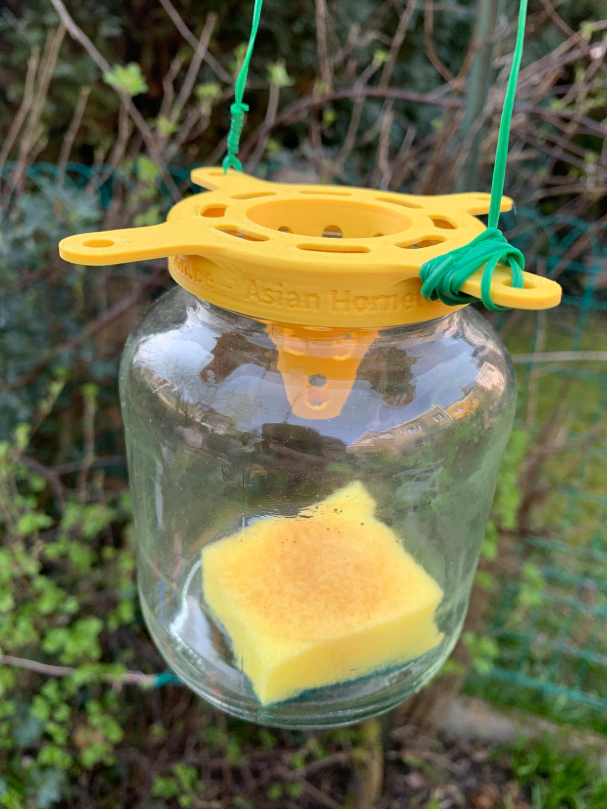- Sortir le piège, l’ouvrir, retirer l’éponge et éliminer les frelons morts.